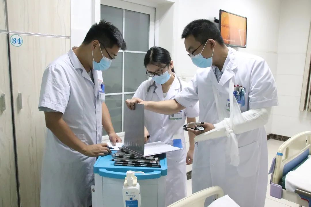 這位帶傷堅(jiān)守崗位的醫(yī)生就是心內(nèi)科主治醫(yī)師薛來良。查房、處理醫(yī)囑、詢問病史、整理病歷......“現(xiàn)在左手不太方便,所以查房有點(diǎn)慢。一開始的時(shí)候還不習(xí)慣,現(xiàn)在已經(jīng)慢慢的適應(yīng)了。”心內(nèi)科醫(yī)生薛來良靦腆的告訴我們。